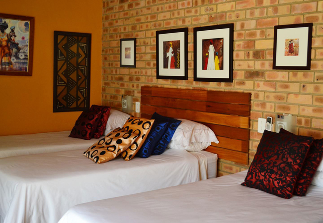 This Family Room is furnished with two single beds. The en-suite bathroom is equipped with a shower. During your stay at this award winning 4 star guest house you can make use of the swimming pool, spa, bar and braai facilities.