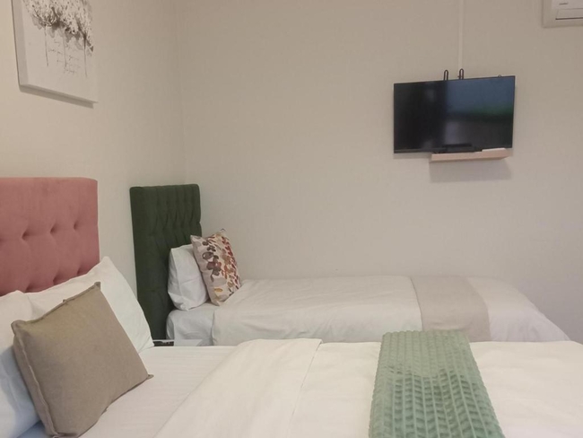 The Deluxe Triple Room comfortably accommodates up to three guests with a queen-size bed and a single bed. The en-suite bathroom features a shower. Designed for both comfort and practicality, the room includes air-conditioning, a smart TV, a desk, and complimentary Wi-Fi. Guests have access to an iron, ironing board, and electric blanket. The kitchenette is equipped with a bar fridge, microwave, and coffee and tea-making facilities, offering added convenience for self-catering. Daily cleaning service is provided, and the room is strictly non-smoking.