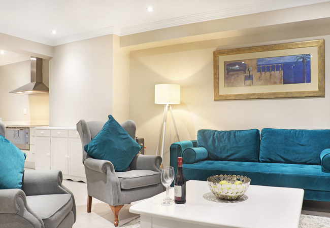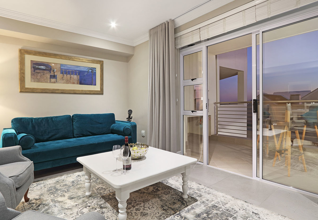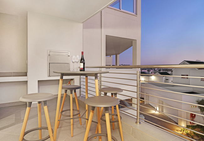 The lounge opens onto a balcony that features a gas BBQ and partial views of the world famous Table Mountain.