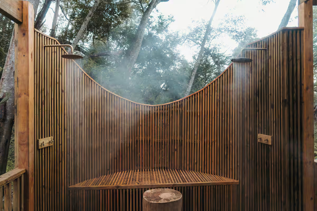 Designed to accommodate two guests, the cabin features a spacious king-size bed and a private en-suite bathroom, which includes a bathtub, both indoor and outdoor showers, a washbasin, and a toilet. High-quality linen and soft towels are provided for your comfort.