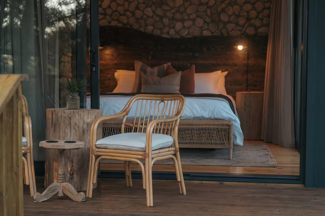 Boomhuis Farm Stay is a charming, off-the-grid cabin tucked away among the trees on a privately owned farm at the base of the majestic Outeniqua Mountains in Blanco, George. Ideal for couples seeking a romantic retreat or those longing for a tranquil break immersed in nature, this setting offers peace, privacy, and panoramic beauty.