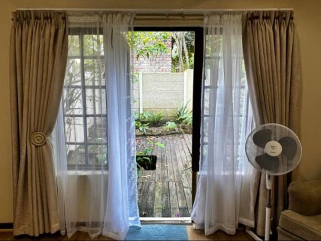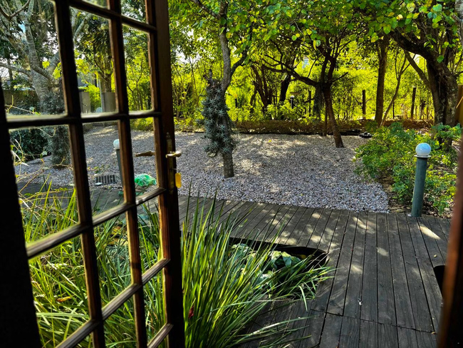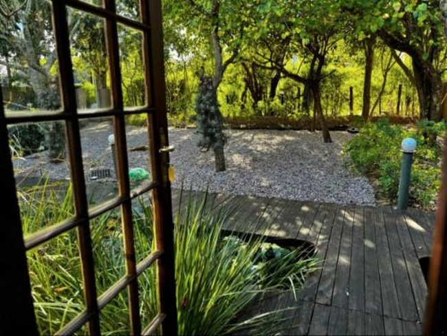 The lush gardens invite you to relax and enjoy the tranquility, while the communal swimming pool and braai areas provide further options for unwinding.