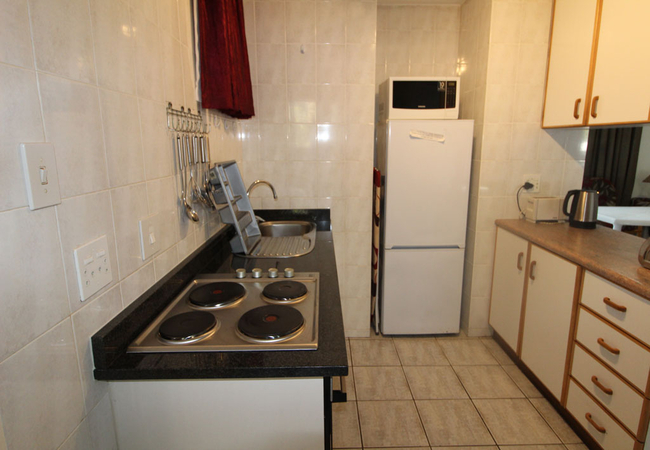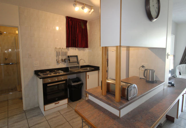 The kitchen is fully equipped for self-catering and includes a stove and oven, a fridge-freezer, a microwave, and cutlery and crockery. The lounge area includes air-conditioning and a TV. Guests will need to bring their own DStv decoder and smart card.
