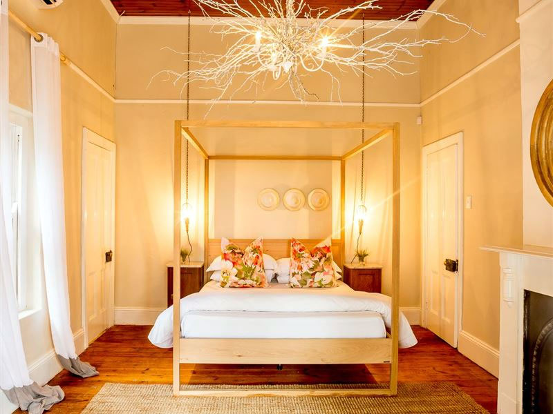 Amazingly decorated room with a 4-poster queen sized bed. with crisp white percale linen. Ensuite bathroom with bath and hand shower. The room is equipped with airconditioning, flatscreen tv with dstv, bar fridge and coffee and tea facility.