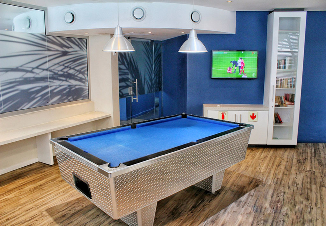 Breakers 421 is air conditioned and has two bedrooms. The main bedroom has a double bed and a TV and the second bedroom has a tri-bunk which has a double bed at the bottom and a single on top. The bathroom has a shower over the bath. The kitchen is fully equipped for self catering and has a breakfast bar with stools. There is a dining area and comfortable lounge which has a TV with satellite channels. The apartment has views of the resort and swimming pool. A daily cleaning service is included, except on public holidays.