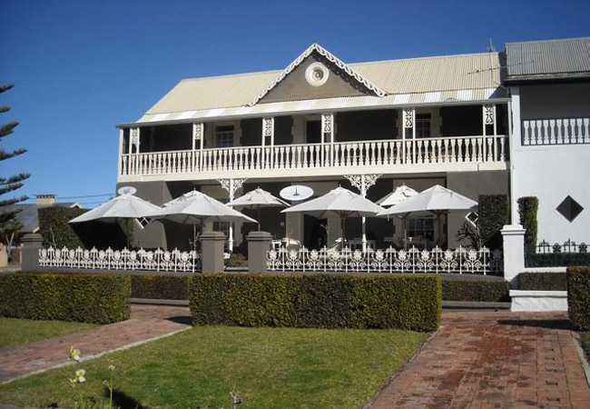 Enjoy a hearty breakfast (included in the rates) or café style lunch on the sunny veranda with a view of the town square. Meals can be enjoyed inside at the fireplace with the glistening chandeliers, in the courtyard with the gold fish pond and wisteria or on the stoep, overlooking the square garden, with more than a 100 Iceberg Rose bushes.