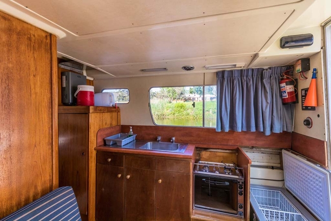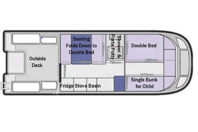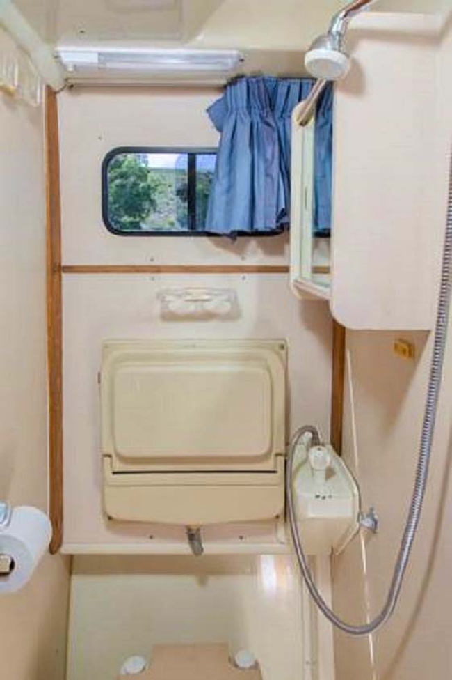 Onboard, you'll find a small kitchenette equipped with a camp fridge, a small gas stove with an oven, and a scullery for your convenience. A separate compartment houses a hot water shower, wash hand basin, and Porta Potty.