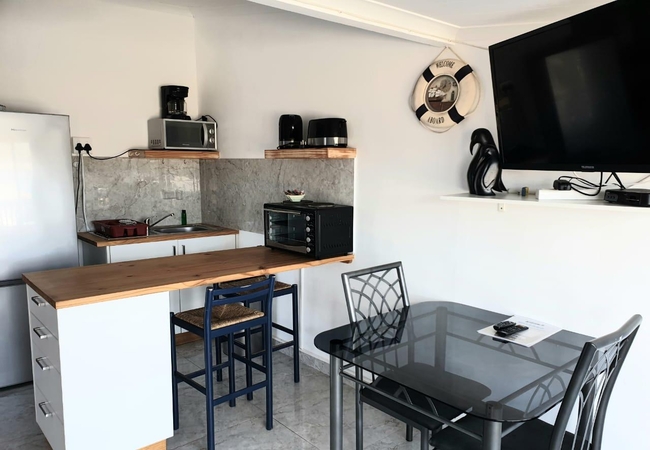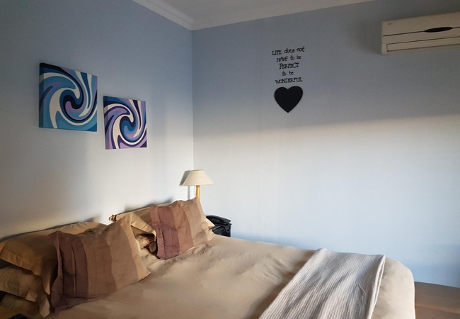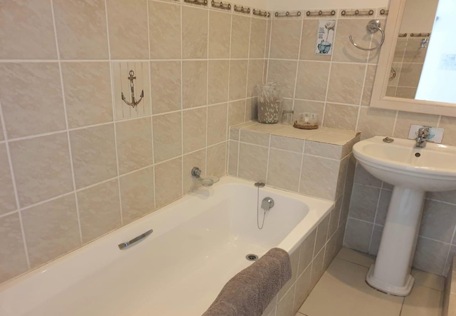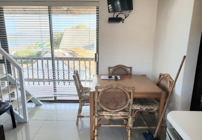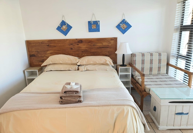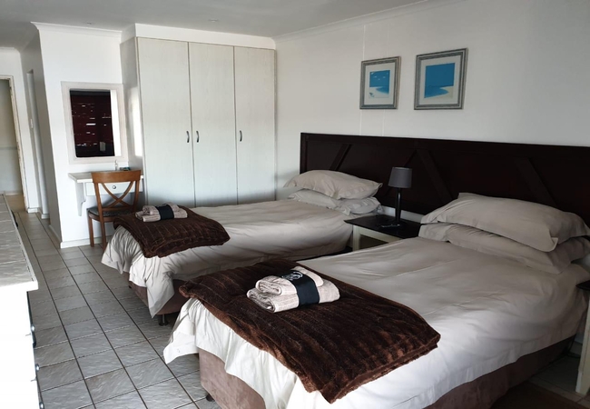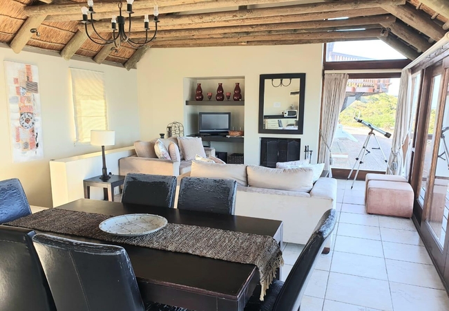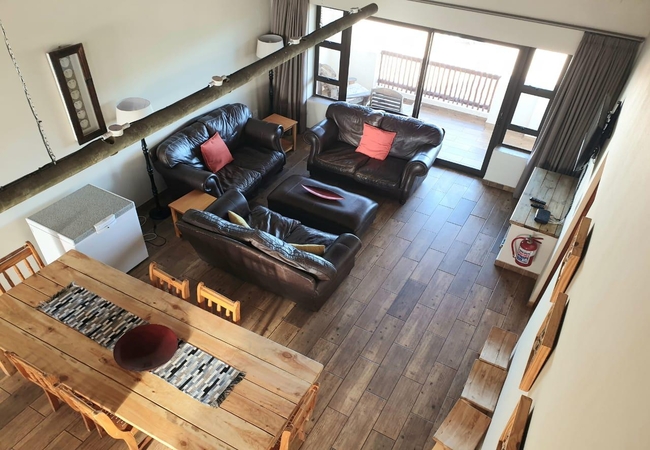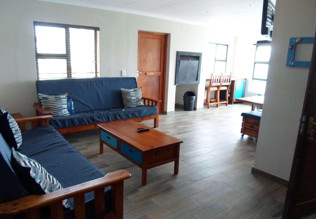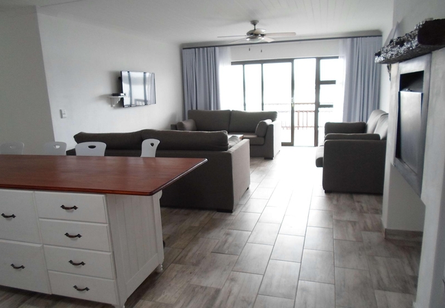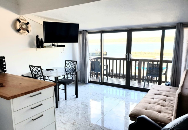 Although this unit has no view, the interior makes up for that. Fully equipped self-catering unit offers 2 bedrooms furnished with a King-size bed in one and twin beds in the other. There is an en-suite bathroom to the main bedroom fitted with a shower, toilet and basin and a separate bathroom for the other bedroom fitted with a bath, toilet and basin. The kitchen forms part of an open plan living area that includes an indoor braai. All you need to stay is to enjoy your holiday and have fun. Includes DSTV