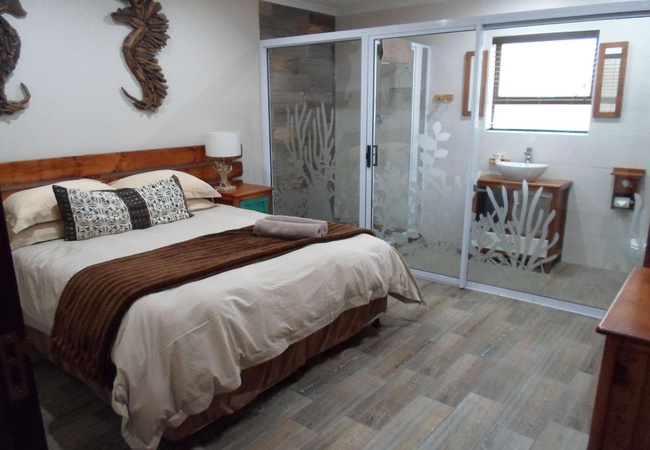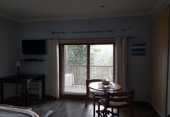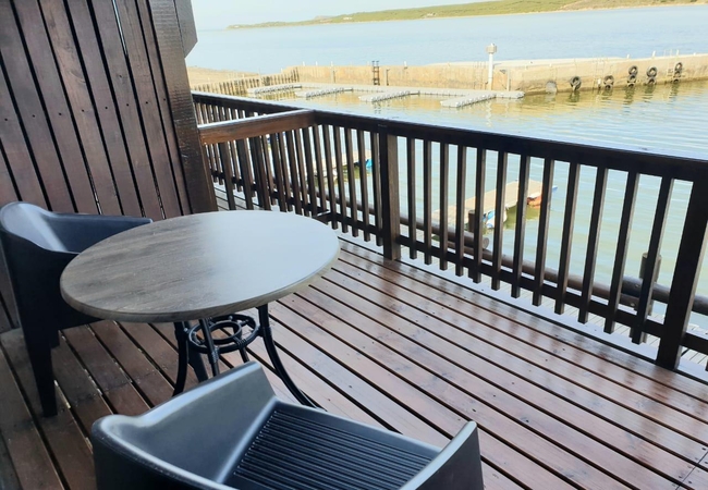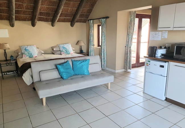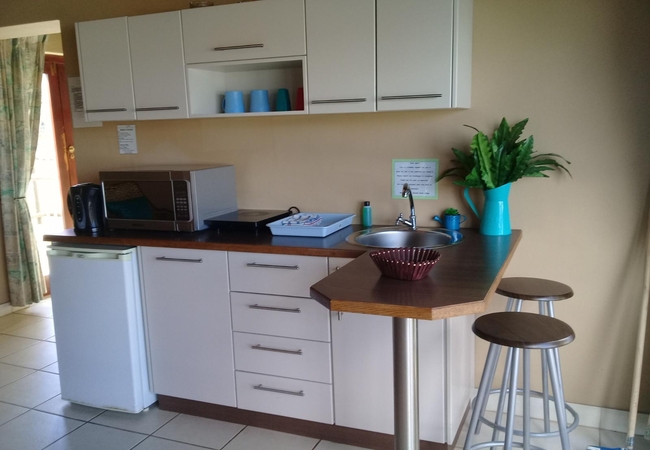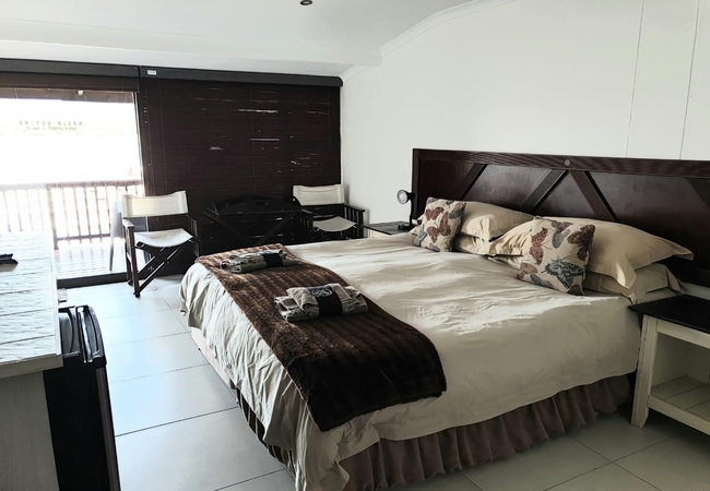 Waterfront Room 100 is a lovely cozy self-catering unit with a well equipped kitchen. The bedroom is furnished with a King-size bed and the bathroom is fitted with a shower, toilet and basin. The unit is on the river and offers beautiful views.