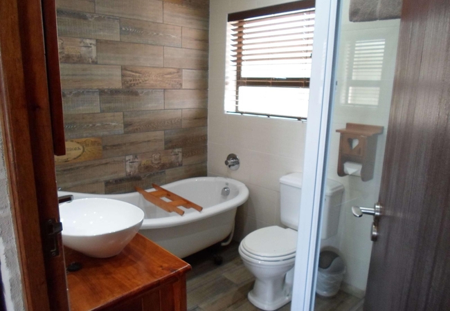 This cozy 1-bedroom self-catering unit is ideal for a couple's break away week-end. This unit is furnished with a double bed and a bathroom fitted with a bath, shower, toilet and basin. There is a fully equipped kitchen. For your cold winter nights there's a fireplace to warm you up and a balcony overlooking the river.