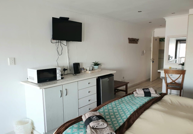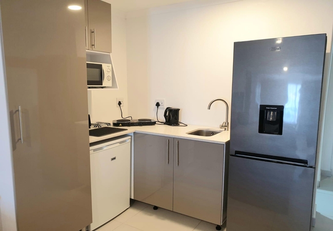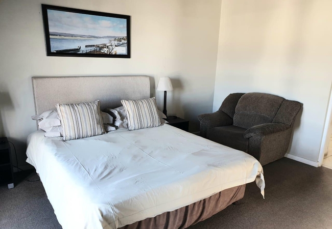 This is a 1-bedroom unit furnished with a double bed. The en-suite bathroom is fitted with a shower, toilet and basin. The unit is equipped with a bar fridge, microwave and tea / coffee making facilities.