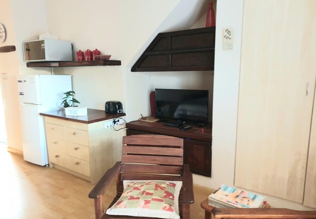 This is a 1-bedroom unit has stairs to the bedroom and furnished with a double bed. The en-suite bathroom is fitted with a shower, toilet and basin. The unit is equipped with a bar fridge, microwave and tea / coffee making facilities. The unit has a TV.