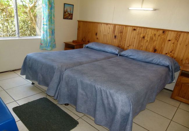 Each cottage has either a double bed or 2 single beds in the main bedroom, a double bunk for children in the second bedroom and 2 single beds in the lounge / dining area. The kitchen is extremely well equipped including double door fridge / freezer and microwave and a gas stove with oven. The bathroom has a shower over the bath and a separate toilet. Bed linen is provided but guests are required to bring their own toiletries, bath and kitchen towels. All cottages have a TV (with SABC channels and a satellite dish so bring your own standard decoder for full dstv), their own braai area and monitored security and there is a security gate at the entrance to the resort.