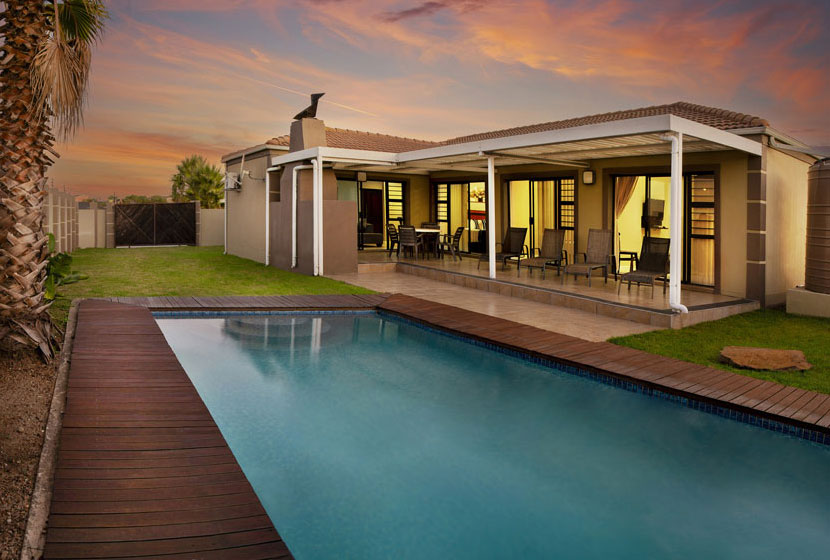 Each villa is fully furnished with its own swimming pool, braai area and tandem garage.
