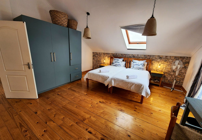 The other bedrooms are located upstairs. The second bedroom is furnished with a Queen-size bed and the third has four single beds. There is a separate bathroom shared by these two rooms.