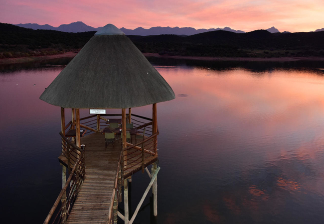 Buffelsdrift is a sprawling game farm in the foothills of the Swartberg Mountains in the Cango Valley, Pristine bushveld, lush vegetation and a 5 ha dam provides a haven for twenty game species and more than 217 bird species.
