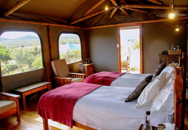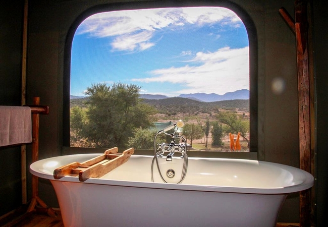 Experience an authentic bushveld stay in our Luxury Family tents. Each has a spacious main room and a children's room with a shared en-suite bathroom separating the rooms. These tents are surrounded by Karoo fynbos with views of the Swartberg Mountains.