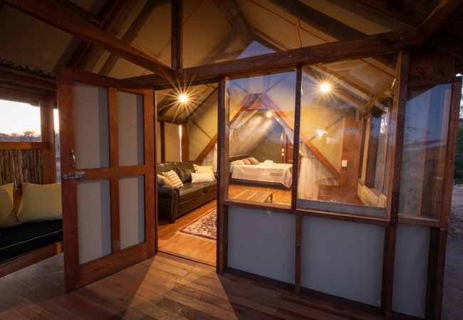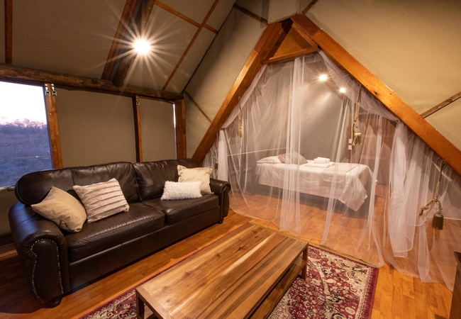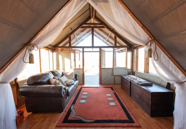 Stay in one of two sleeper Safari Tents, each with a thatched room and a canvas front. Each tent contains two three-quarter beds and an en-suite bathroom with a shower, basin, toilet and gas geyser. The tents are situated on their own raised wooden deck and each have their own private patios.