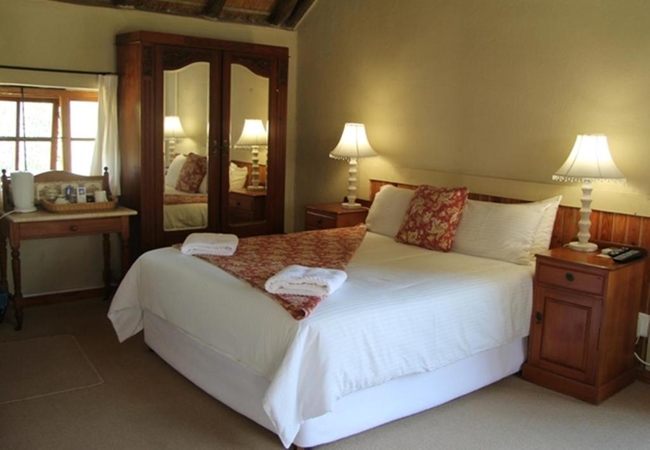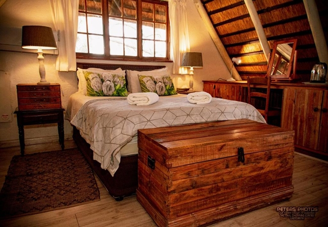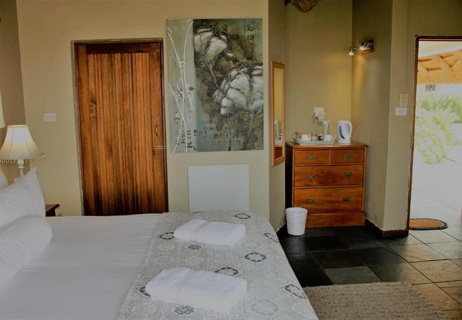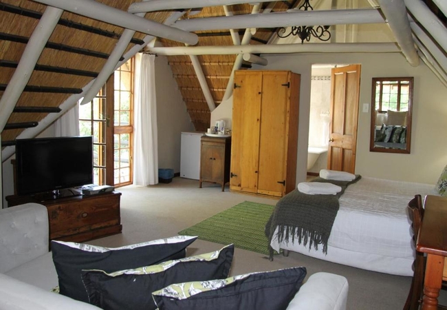 Accessed via a flight of stairs in the main building. Queen bed for single occupation. Shower en-suite. Flat screen Television DSTV, Wireless Internet Access, Electric Blanket, Airconditioner, Tea / Coffee facilities. Non-smoking.
