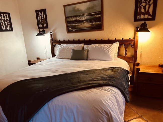 The Spring Room is situated on the inside of the main house. The room is furnished with a Queen-size bed and has an en-suite bathroom fitted with a shower, basin and toilet. The room is equipped with a TV and a desk for those traveling on business.