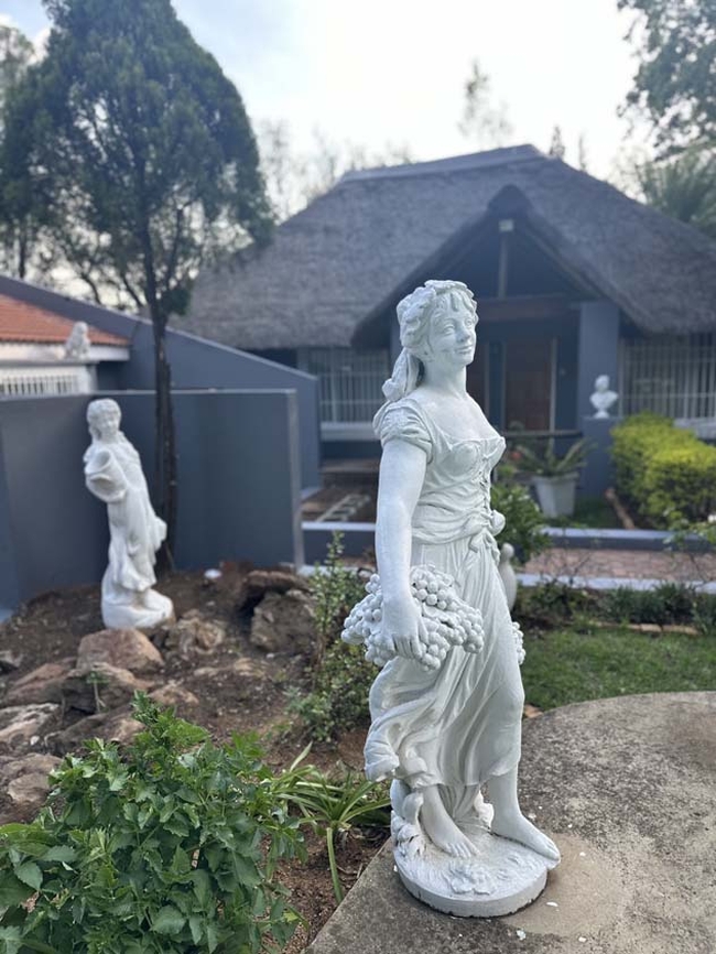 Very relaxed atmosphere set in lovely gardens with large bird cages swimming pool and fountains. 5 minutes to JHB centre and out into the country. breakfast and setting are exceptional. Hosts and staff are friendly and obliging.