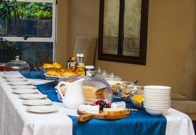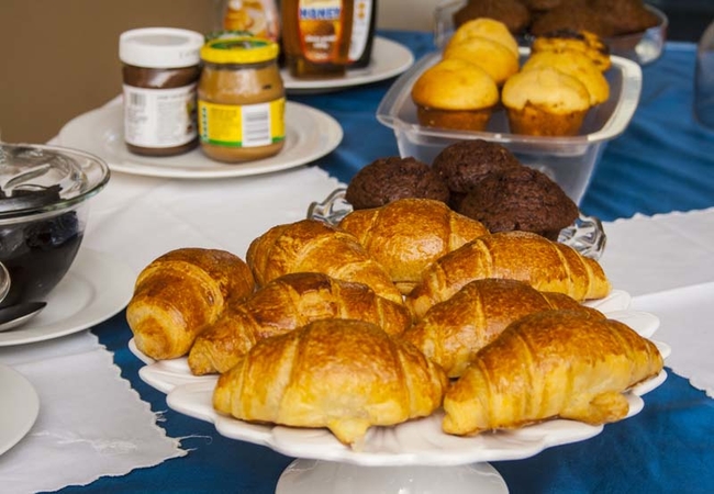 Our buffet breakfast offers a large selection from cereals to lovely, fresh baked cakes from our Italian chef. We are definitely not shy when it comes to the selection that we have to offer. From full breakfast to a quick, lite breakfast. Dinner can be enjoyed at one of the nearby restaurants.