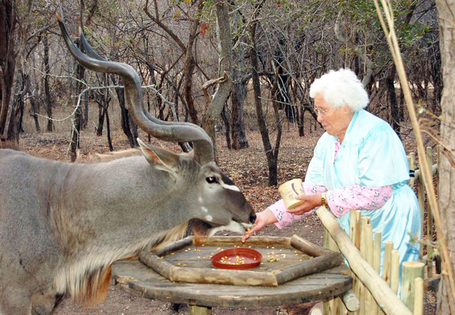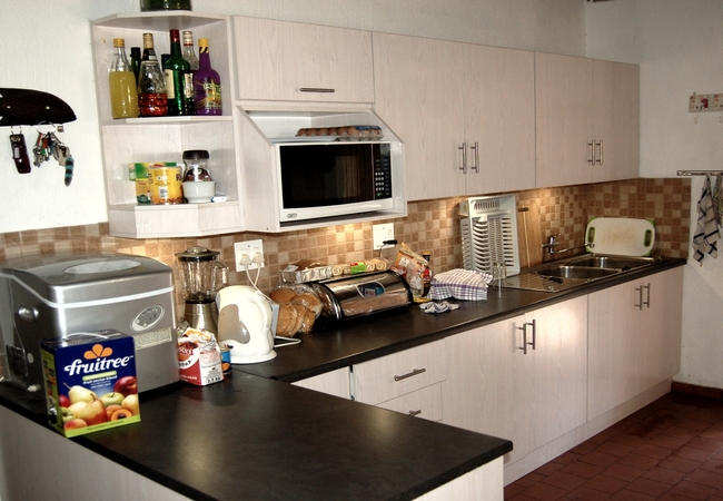 Our four legged friends like kudu, zebra, warthog, mongoose and monkey visit on a regular basis and some will feed out of your hand - so keep the food ready! The lovely male bush-buck with mom and lad as well as the small duiker family also visits during early morning and afternoon. The patrys, flocks of guinea fowl and other birds will pick up their food during the day.