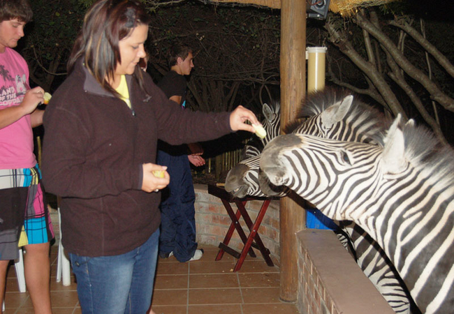 Dit was ongelooflik lekker. Ons het so baie wild gesien rondom die lodge. Die Zebras en Kudu's het selfs uit ons hande geeet. Die nag apies was net so oulik, elke aand kom kuier!