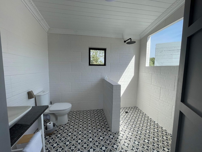 The cabins at BushBuck Farm Eco-Retreat feature an open-plan design, creating a spacious and comfortable environment for two guests. Each cabin is equipped with a queen-size bed, an en-suite bathroom with a shower, toilet, and washbasin, and a well-equipped kitchen. Guests can enjoy preparing their own meals with facilities including a two-plate stove, microwave, refrigerator, freezer, and all necessary cutlery and crockery.