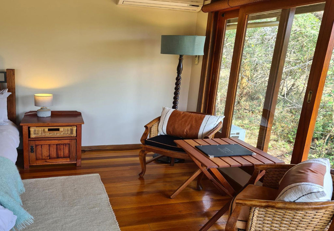 Contemporary design, high ceiling timber chalets with wooden floors combine quirky with bright colour schemes and invigorating styling. Self-cater in style! The boutique chalets are self-contained and spacious with stackable doors and lots of glass allowing the bush to seep into the airy and vibrant rooms, providing an energetic contrast.
