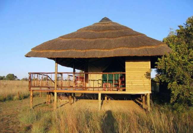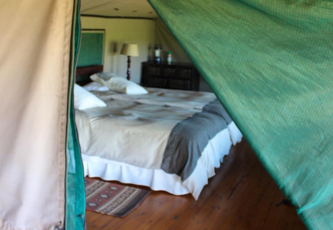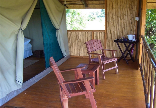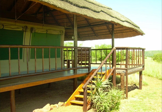En-suite luxury tented accommodation in tents under thatch, on a raised deck. Single or double accommodation available.