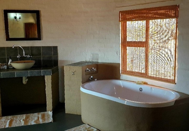 Each chalet is furnished with a king-size bed that can be converted to twin beds. Each chalet features a private bathroom fitted with an outdoor shower, toilet and basin. There is a bar fridge, tea/coffee facilities, and a deck with seating overlooking the bushveld.