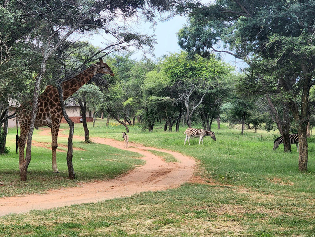 The chalets are situated around a dam so don't be surprised to receive visits from giraffe, impala, kudu, bushbuck, zebra and various other species while you have your sundowner! Further facilities such as a new swimming pool and kids playground with swings and sandpit are available for you to use.