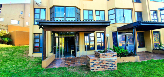 Sliding doors open from the lounge onto a patio furnished for outdoor relaxation. Guests can enjoy the built-in braai and the expansive grassed area, which is perfect for children to play. The unit includes a single garage, and for peace of mind, it is fitted with both an alarm system and a safe for valuables. While the apartment is not serviced, housekeeping can be arranged at an additional cost. All linen and towels are provided, but guests are kindly asked to bring their own beach towels.