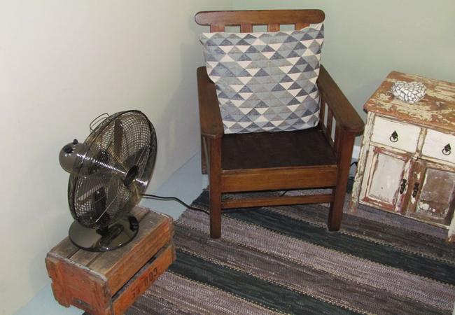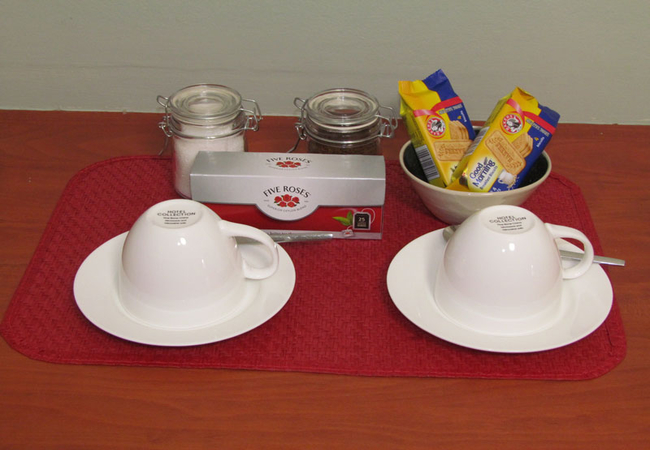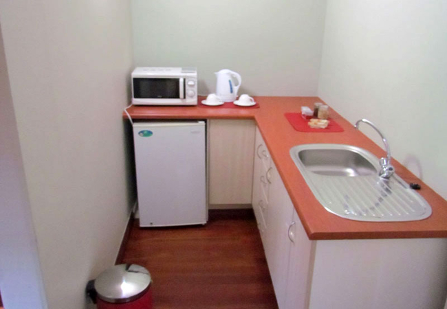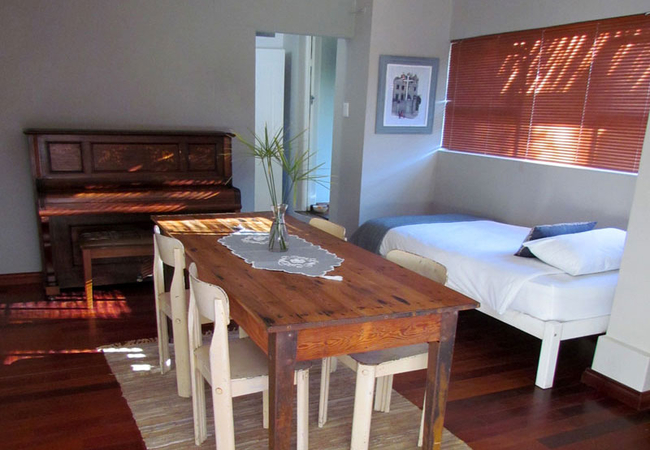 The spacious unit can comfortably accommodate three guests. The bedroom has a queen sized bed and there is single bed in the dining area. The two sleeping areas can be separated by doors. Bedding and towels are supplied. The bathroom contains a shower and small basin.