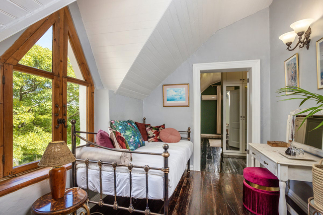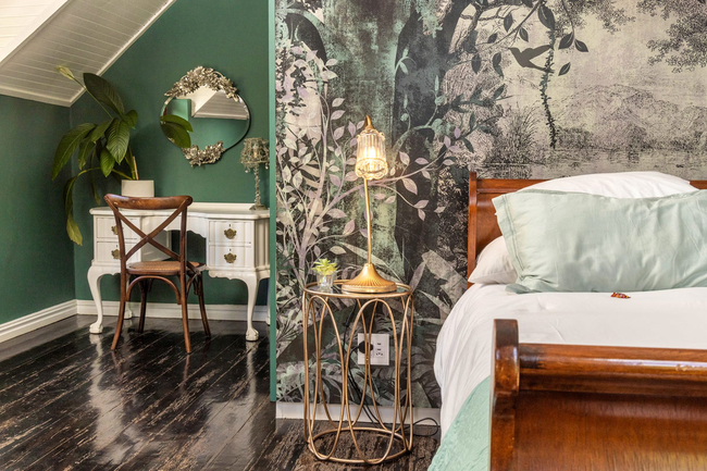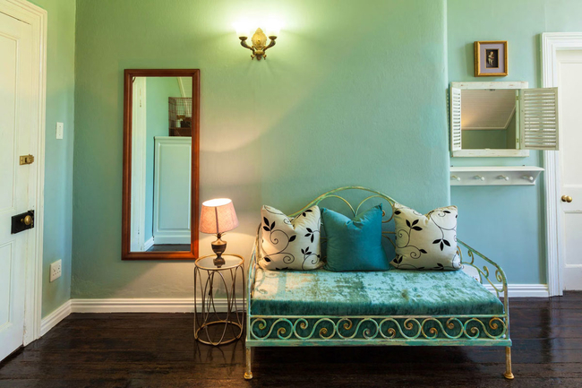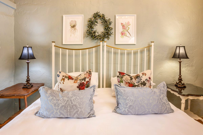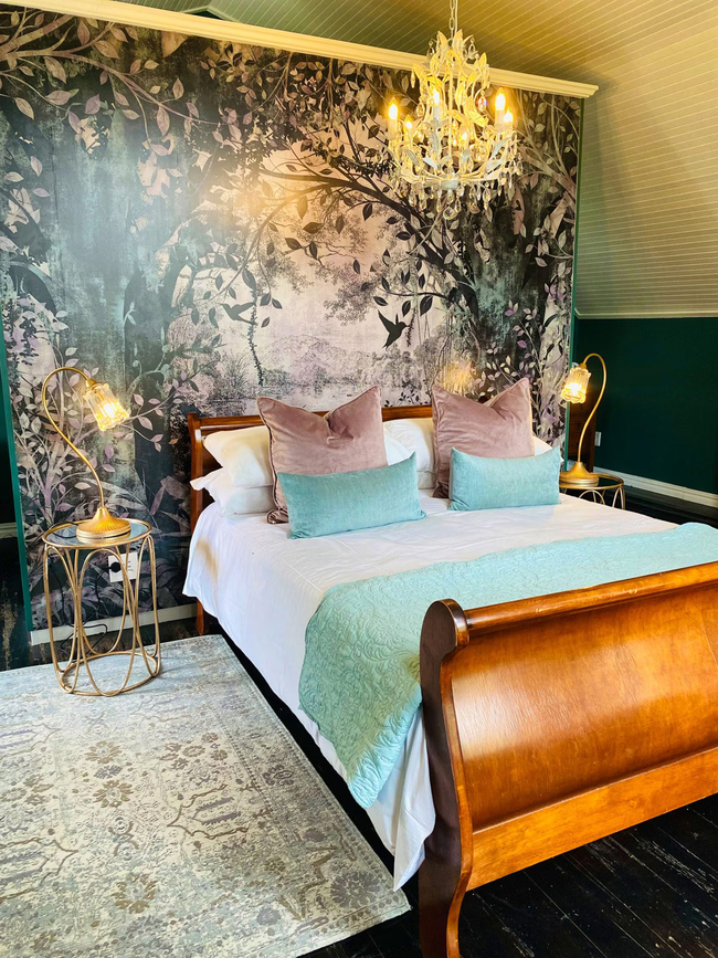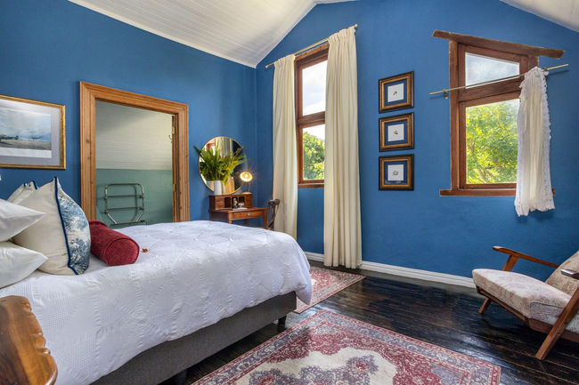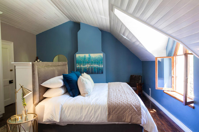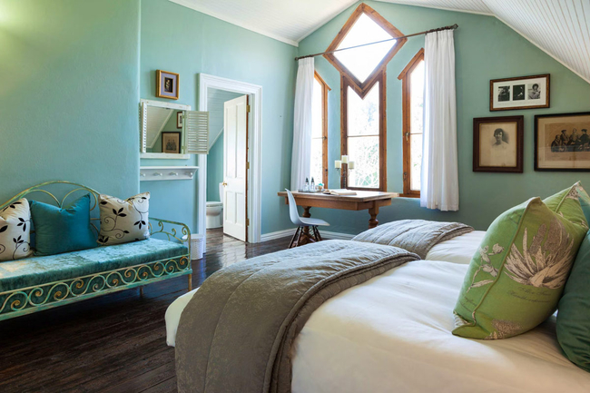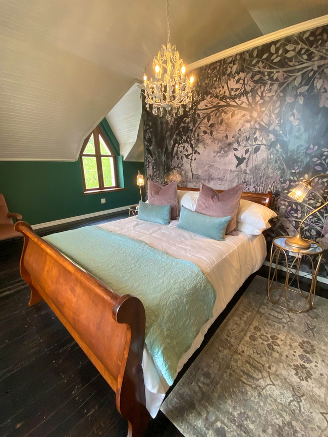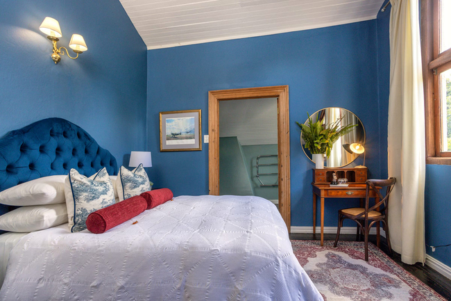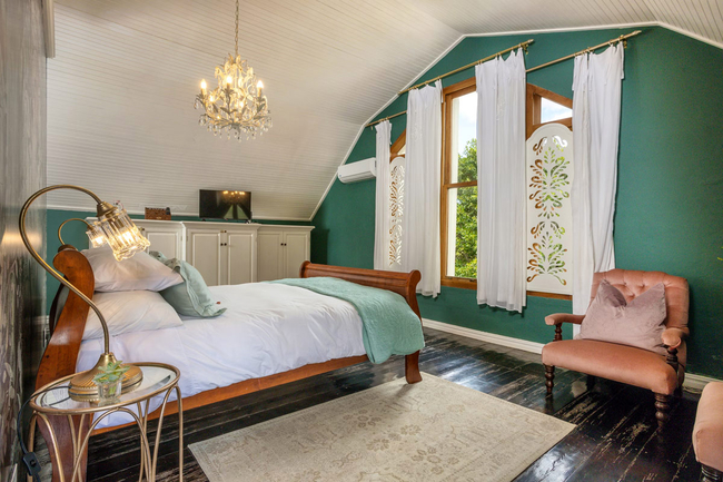 The Vintage room is furnished with a king-size bed and has diamond shaped windows, with a view of the front gardens of the manor house. This room is located on the first floor. Caledon Grace Guest House rooms include a hair dryer, Wi-Fi, a fan, tea tray and electric blanket.