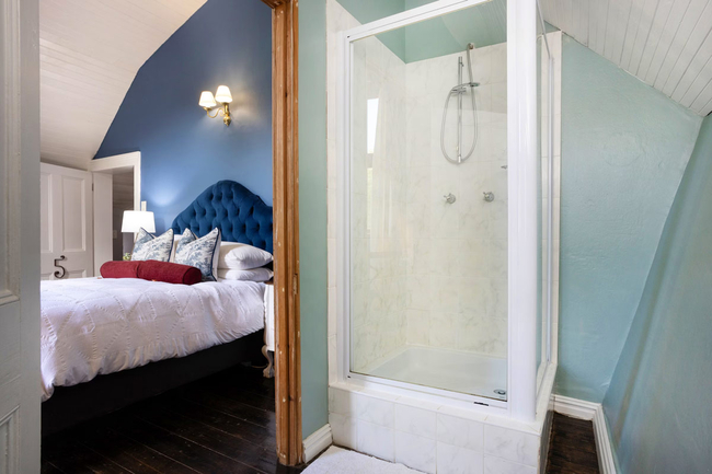 The sunny east-facing Delft Room is located on the first floor and is furnished with a double bed, a work desk and chair. The en-suite bathroom is fitted with a shower, toilet and basin. In the room there is tea and coffee, a free-standing fan and fast Wi-Fi internet.