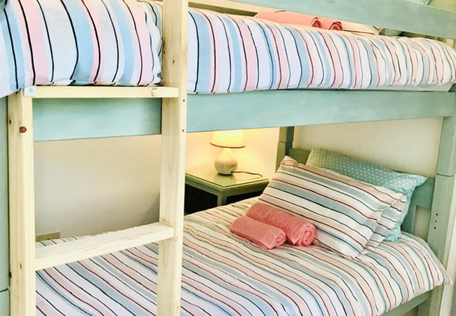 Camelot on Bridekirk is a self catering holiday house with three bedrooms. The main bedroom is furnished with a King-size bed and an en-suite bathroom with a shower, toilet and a basin. The second bedroom has a Queen-size bed and the third bedroom has twin beds / bunk beds which are ideal for children. The second and third bedrooms share a bathroom with a bath. Bed linen, hairdryer and bathroom towels are provided.