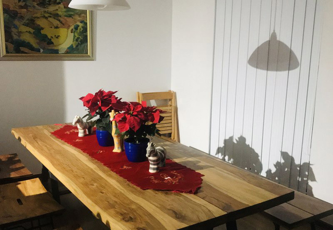 The fully equipped kitchen is perfect for self catering and includes a stove, oven, fridge, microwave, washing machine and a dishwasher. Guests are able to enjoy their meals in the dining area.