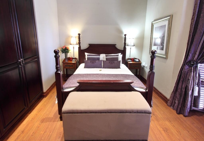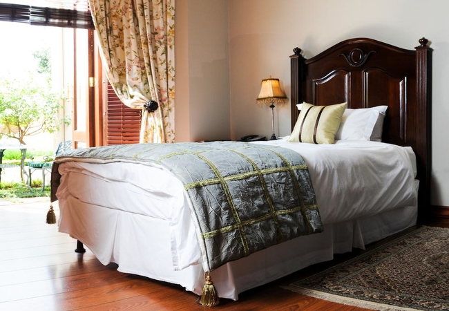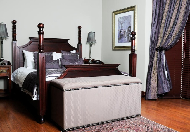 Candlewoods Guest House is nestled in the heart of a rich heritage site in Candlewoods Country Estate, Centurion. It is a Victorian style building with a pit roof and wooden windows. The interior is stylish decorated with rich fabrics and crisp white linen. The Guest House dates back to 1859 and is built on a farm originally owned by Rasmus Erasmus.