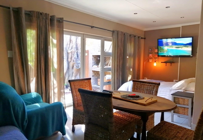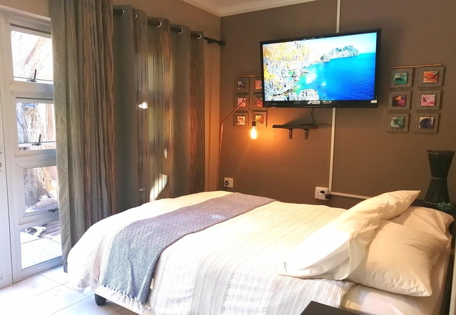 The Lovers Nest Honeymoon Suite is a one bedroom cabin which is furnished with a double bed. Fully furnished and equipped with bedding supplied. The cabin has an air-conditioner, TV with DSTV commercial package and a braai with magnificent views on the river.