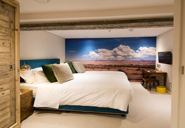 The warm bronze and rich red colours draws you in on a journey to the open expanse of the Karoo. Relax in this stylish, fully equipped two bedroom apartment. Each apartment has two bedrooms, two bathrooms and a double sleeper couch, making it the perfect space for a family. There is also a fully equipped kitchen and a spacious lounge. The apartments are uniquely decorated and have a balcony with views of Table Mountain.