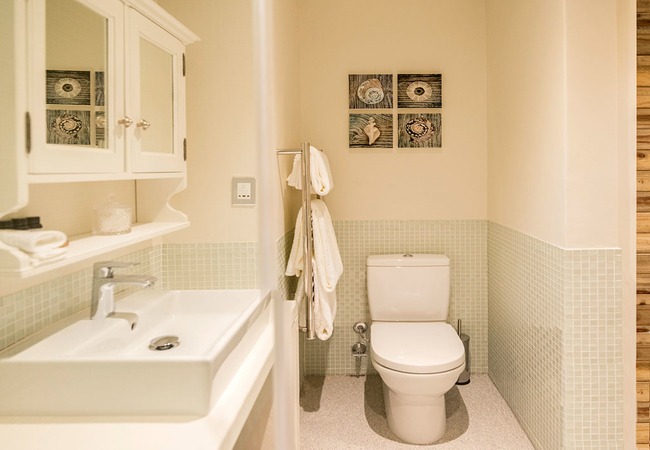 This tranquil room has beautiful portraits of breaking and calming waves. It is difficuly not to feel at home in this spacious, fully equipped, two bedroom apartment.