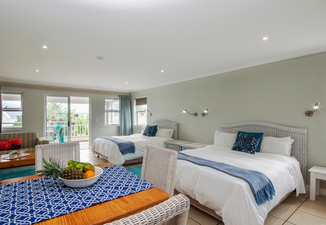 Bedroom with two double beds, open plan lounge, dining area & fully equipped kitchen, upstairs two single beds.DSTV, hairdryer, tea/coffee facilities & complimentary bottled water and a heater.