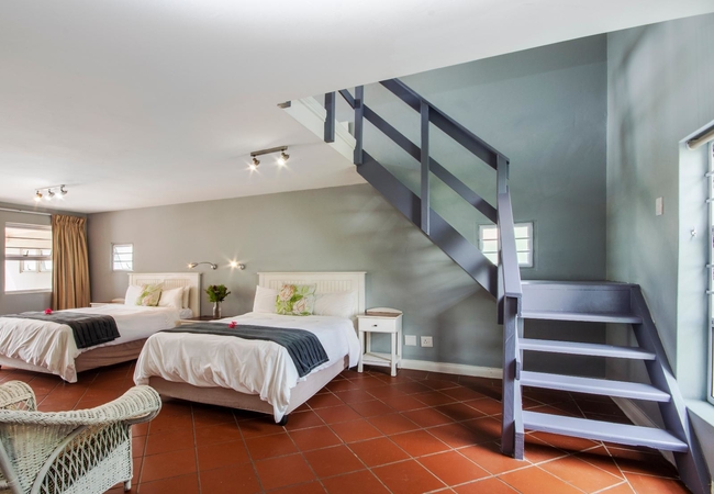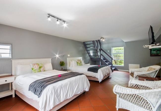 The Club Family Apartment has a bedroom with two double beds, open plan lounge, dining area and fully equipped kitchen, upstairs two single beds. TV with DSTV, hairdryer, tea and coffee facilities and complimentary bottled water, heater, internet access at reception. Communal swimming pool, Restaurant.