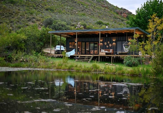 Cape Sugarbird is a spacious self catering eco-cabin offering Citrusdal accommodation. The cabin is perched on the edge of a waterlily pond with views down the valley. Our stylish, off-grid eco cabins have been designed to provide all the comforts and modern luxuries, while protecting our beloved natural heritage.