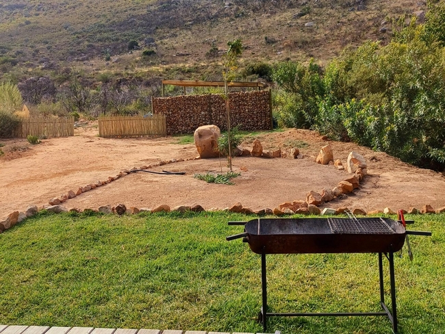 Outdoors, a deck with seating, a braai and firepit, and a terrace overlooking the garden invite guests to relax and enjoy the natural surroundings. The cabin is entirely non-smoking, offering a peaceful retreat that respects the environment.