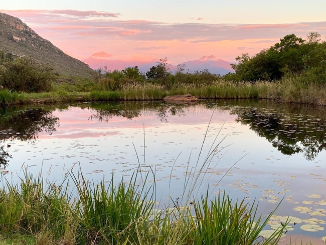Guests can swim in spring-fed dams, explore hiking trails featuring striking rock formations and ancient San rock art, and observe the region’s abundant birdlife. Wildlife enthusiasts may encounter creatures such as the Cape Leopard, aardvark, African wildcat, bat-eared fox, Cape fox, and porcupine, while clear night skies offer exceptional stargazing opportunities.