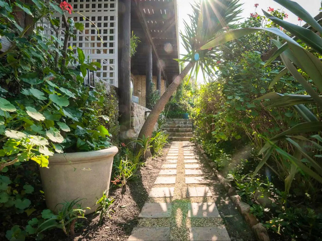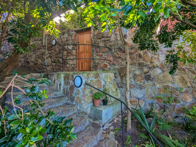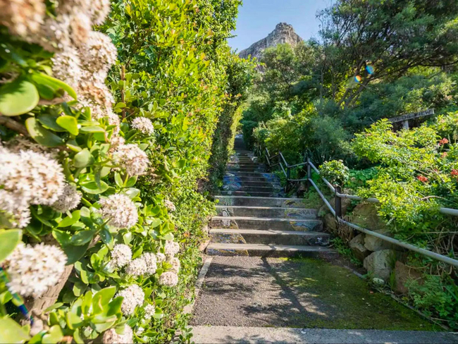 This mountainside retreat gives the impression of being miles away from civilization, yet it is conveniently located just a few blocks from the lively surfers' and artists' enclave of Muizenberg. As you ascend a broad staircase adorned with stunning mosaics, you will be greeted with breathtaking views of False Bay. Early risers can savor the sunrise over the water, with vistas extending to Simon's Town and the Cape Peninsula.