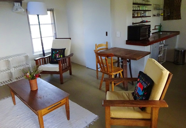 The well appointed kitchenette has everything required for your self catering stay. Outside the veranda has a table and chairs and there is a fenced off garden. Braai facilities are available.
